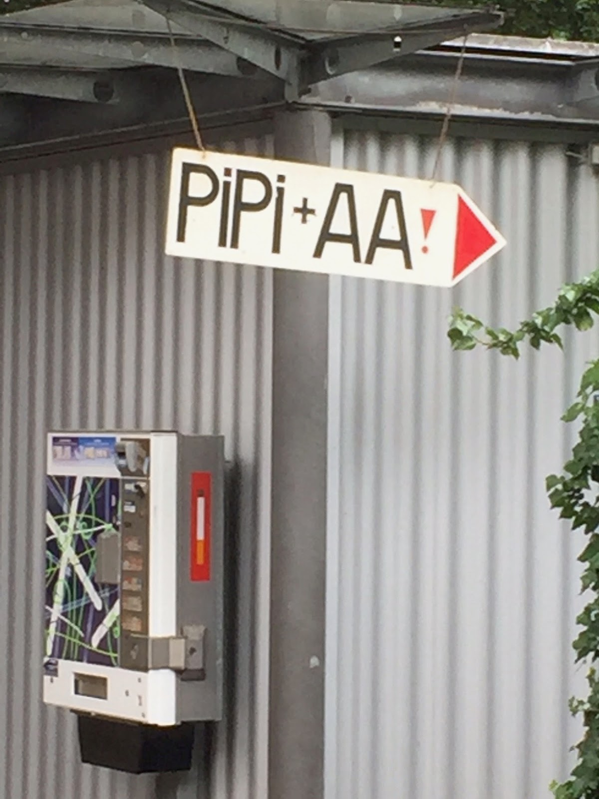 In Oberhausen sah ich dieses Hinweisschild: "Pipi und AA!" Kein WC oder Toilette. Da stehen die Kindheitsworte laut und öffentlich. Die Erinnerungen werden wach und mein Herz klopft. Dann beruhige ich mich aber ganz schnell wieder. Alles ist gut!